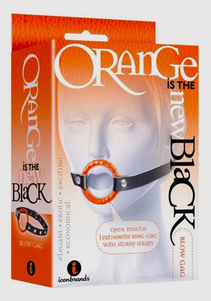Icon Brands - Orange Is The New Black Blow Gag. A bright, sexy classic for bondage and fetish enthusiasts, our leatherette Blow Gag is body safe for your mouth, while sturdy straps hold it in place for endless entry. Keeps submissive quiet and compliant or just adds some kinky fun to everyday oral play. And since it’s Orange is the New Black, it is high fashion and high value. Love a blow job? Put a ring on it! Features: Open-Mouth Design. Beautifully Hand Crafted. Sturdy Leatherette Straps. Soft Leatherette Lacing At Mouth Ring. Specifications: Colors Orange and Black. Materials: Faux Leatherette, ABS Plastic, Phthalate free. Features: Elegant, erotic, exciting, economical. Product Size: Adjustable. One Size Fits Most. Packaging Dimensions 4.5 inches in Width by 6.5 inches in Height by 2 inches in Depth.
