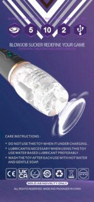 The Blow Job toy creates suction via vacuum force. A tiny hole at the base draws air out of the sleeve which causes it to cling to your dick. If lubed up well enough, Sloshy suction perfectly simulates a Blow Job – Except this has way more texture compared to a mouth. Plus it vibrates, So it may very well simulate a Blow Job that feels better than real life, Just saying...