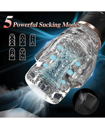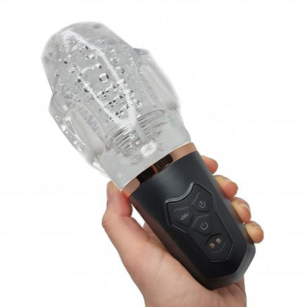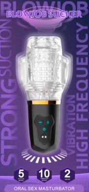 Vibrating Blowjob Sucker Toy is a thrilling Blow Job Simulator for Men with a powerful suction motor that creates a vacuum on your dick to imitate the sensation of oral sex. It also features dual vibrators to enhance your pleasure.