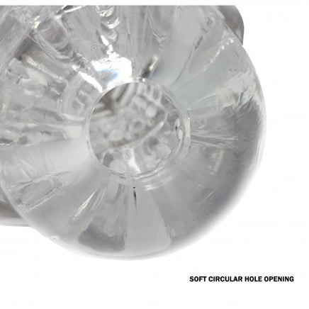 Even though the masturbator sleeve may look solid from the pictures, Rest assured the clear sleeve is squishy and malleable so it feels soft around your penis. Inside the sleeve are rows of rounded dots and the deepest part of the sleeve is finely ribbed to contrast the studded texture above.